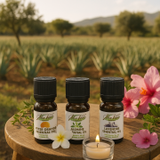 Særligt bemærkelsesværdig: vores aloe vera blomsterolie - en enestående sjældenhed, udvundet af de sarte blomster fra vores aloe vera-planter. I kombination med klassiske olier som lavendel, citron eller rosmarin udfolder der sig en beroligende variation for krop, sind og sjæl.