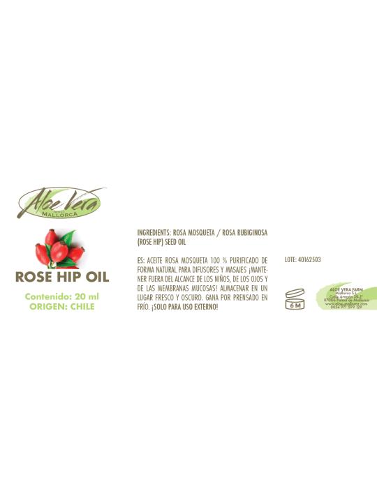 Disfrute del Aceite de Rosa Mosqueta prensado en frío de Aloe Vera Farm Mallorca: 100 % natural, vegano y sin aditivos