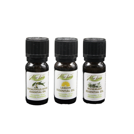 Accuratamente imbottigliati presso l'Aloe Vera Farm Mallorca, gli oli essenziali naturali al 100% - olio di limone puro, olio di rosmarino rinvigorente e olio di eucalipto intenso - sono testati in laboratorio e garantiti privi di additivi sintetici. Questo set per aromaterapia favorisce la concentrazione.